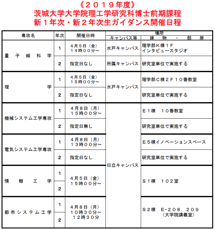 2019年度博士前期課程新入生ガイダンス及び在学生ガイダンスを実施いたします。